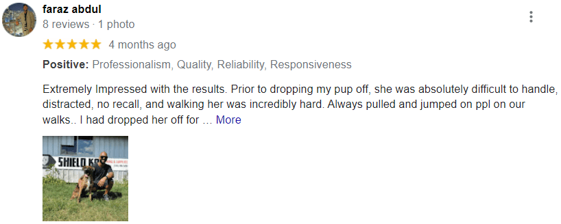 At SHIELD K9, we offer real training with real results. Whether your dog is aggressive, reactive, or just needs some manners, our expert team can help. Choose from our effective board and train programs, day training, personalized private lessons, or engaging group dog training classes to suit your schedule and needs. Beyond training, we offer boarding and doggy daycare services to keep your furry friend happy and well-behaved. Get started today and experience 100% reliability in the real world.